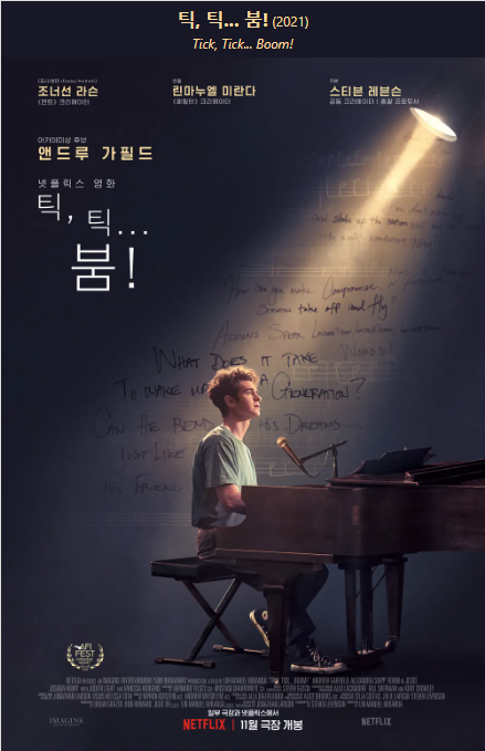 틱틱붐은 극작가 조너선 라슨의 이야기를 다룬 뮤지컬입니다.